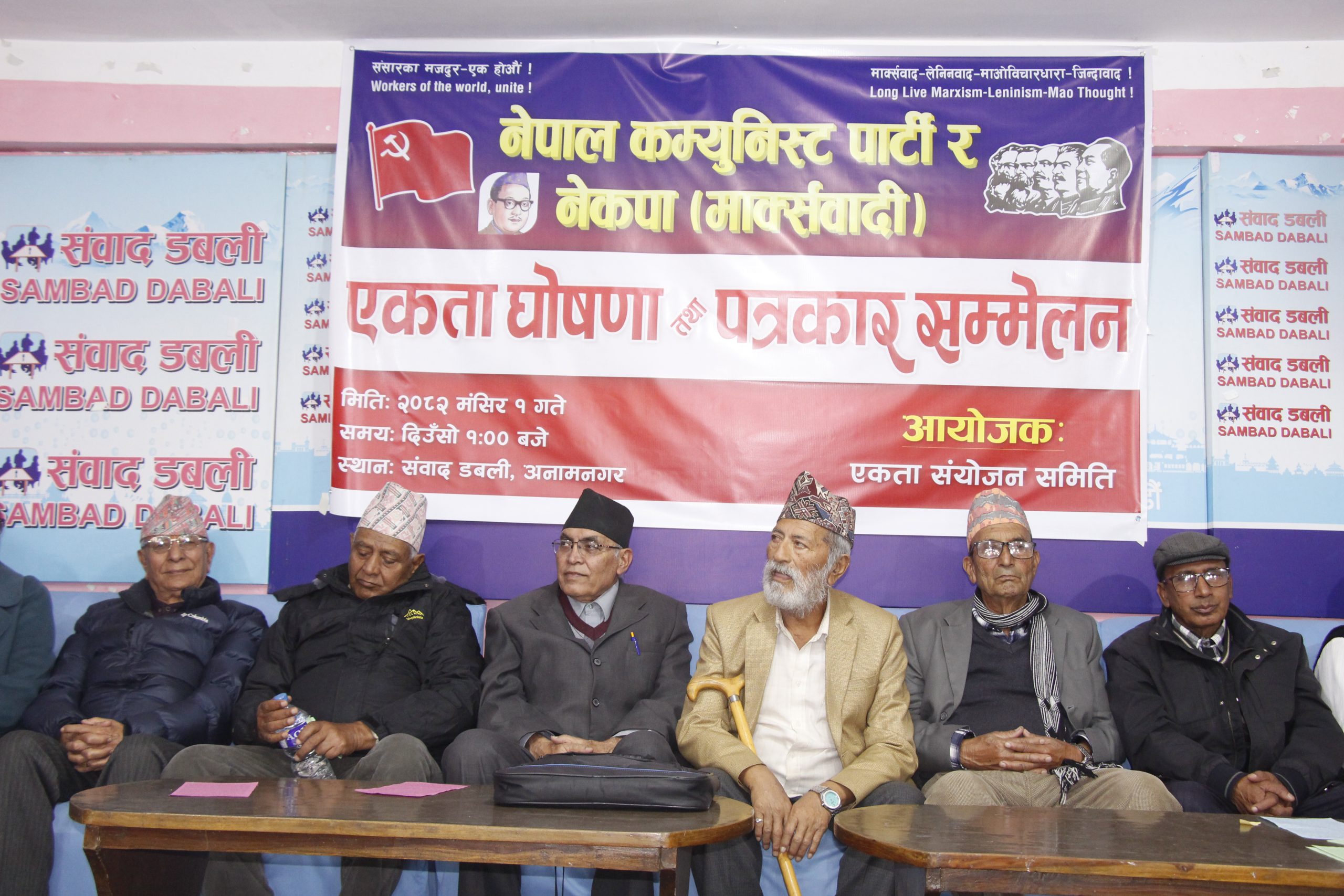 काठमाडौं । नेपाल कम्युनिष्ट पार्टी र नेपाल कम्युनिष्ट पार्टी (मार्कसवादी)बीच पार्टी एकता भएको छ । मंगलबार राजधानीको संवाद डबलीमा आयोजित एकता घोषणा कार्यक्रममा नेताहरुले देश गम्भीर संकटमा गएको भन्दै क्रान्तिकारी कम्युनिस्टहरुबीच धुर्विकरण गरेर देशलाई निकास दिने उद्घोष गरेका छन् ।